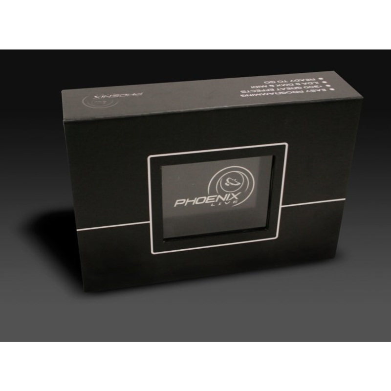 Phoenix Live – de gemakkelijk te gebruiken laser software, ontworpen voor disco’s en clubs. Een hoop voorgeprogrammeerde lasereffecten zijn beschikbaar gesteld voor de gebruiker, zodat u onmiddelijk kan starten zonder van te voren de software te kennen. Verder kunnen ten alle tijde nieuwe effecten geprogrammeerd worden door de gebruiker. Alle effecten, lichtkranten, SMS-4-Lasers en interactieve interventiemogelijkheden voor alle bewegingsassen kunnen bestuurd worden via het touchscreen, een MIDI-keyboard, een PC-keyboard en/of door een externe DMX-controller. Daarnaast verlicht een automatische sound-to-laser functie het werk van de disc jockey.